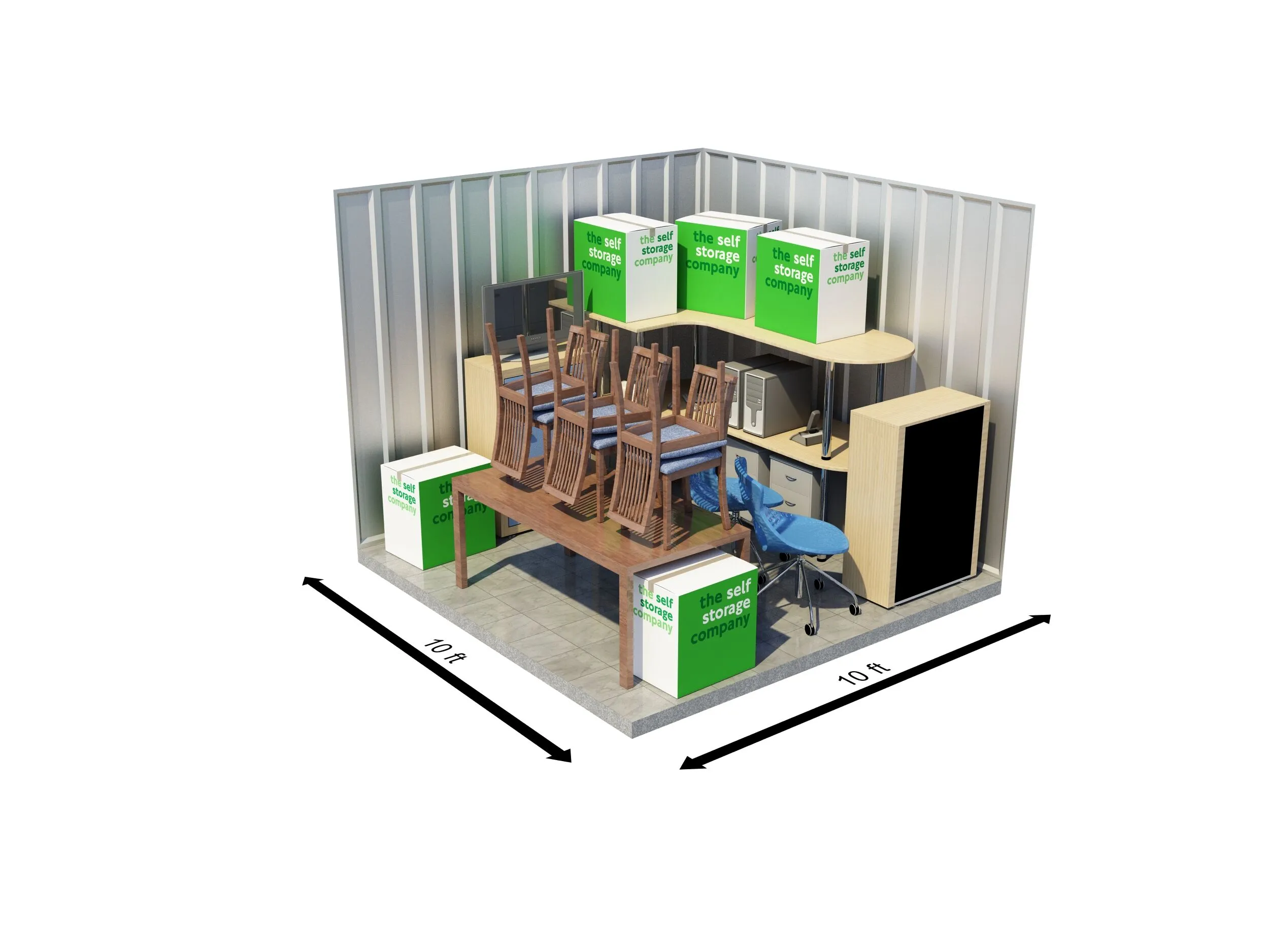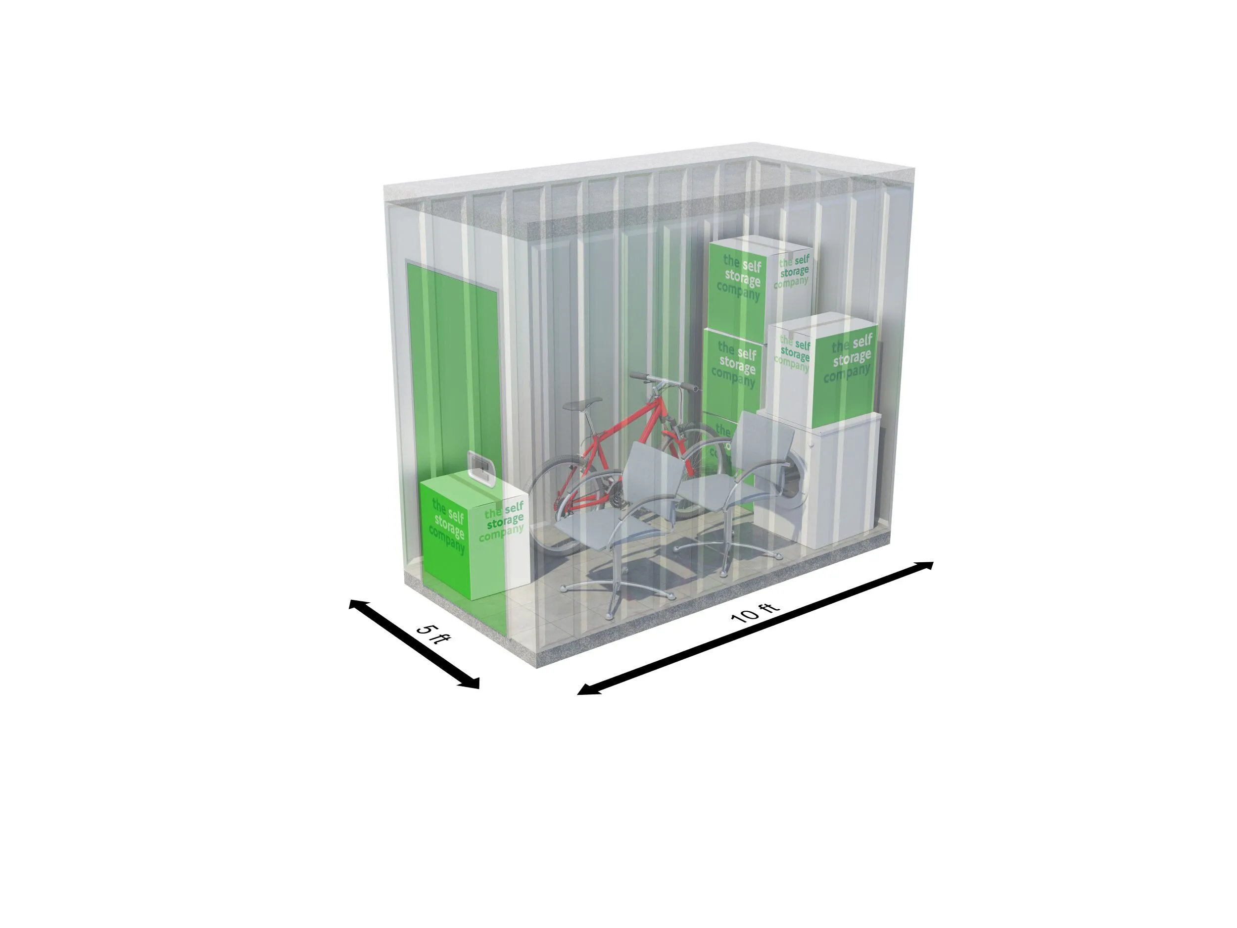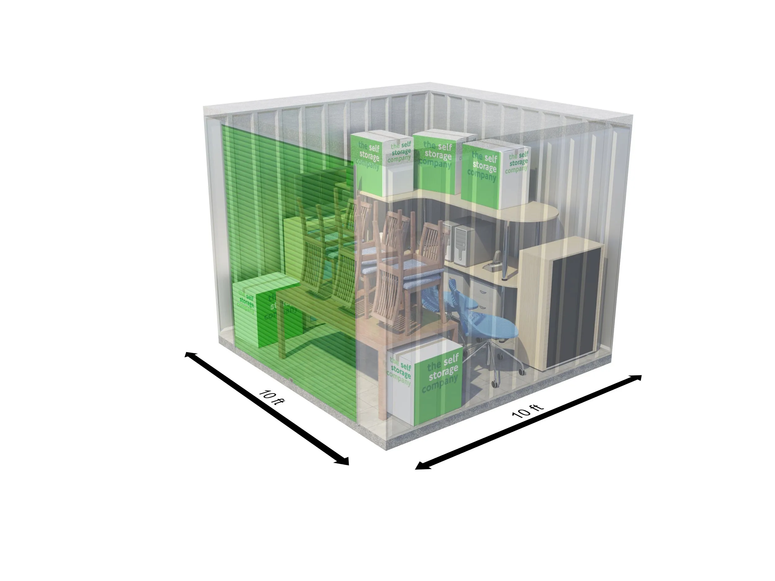 A 35 sqft unit offers the equivalent storage space as a garden shed and can fit up to 60 boxes. Each self-storage unit at The Self Storage Company is individually alarmed and benefits from 24/7 CCTV coverage.