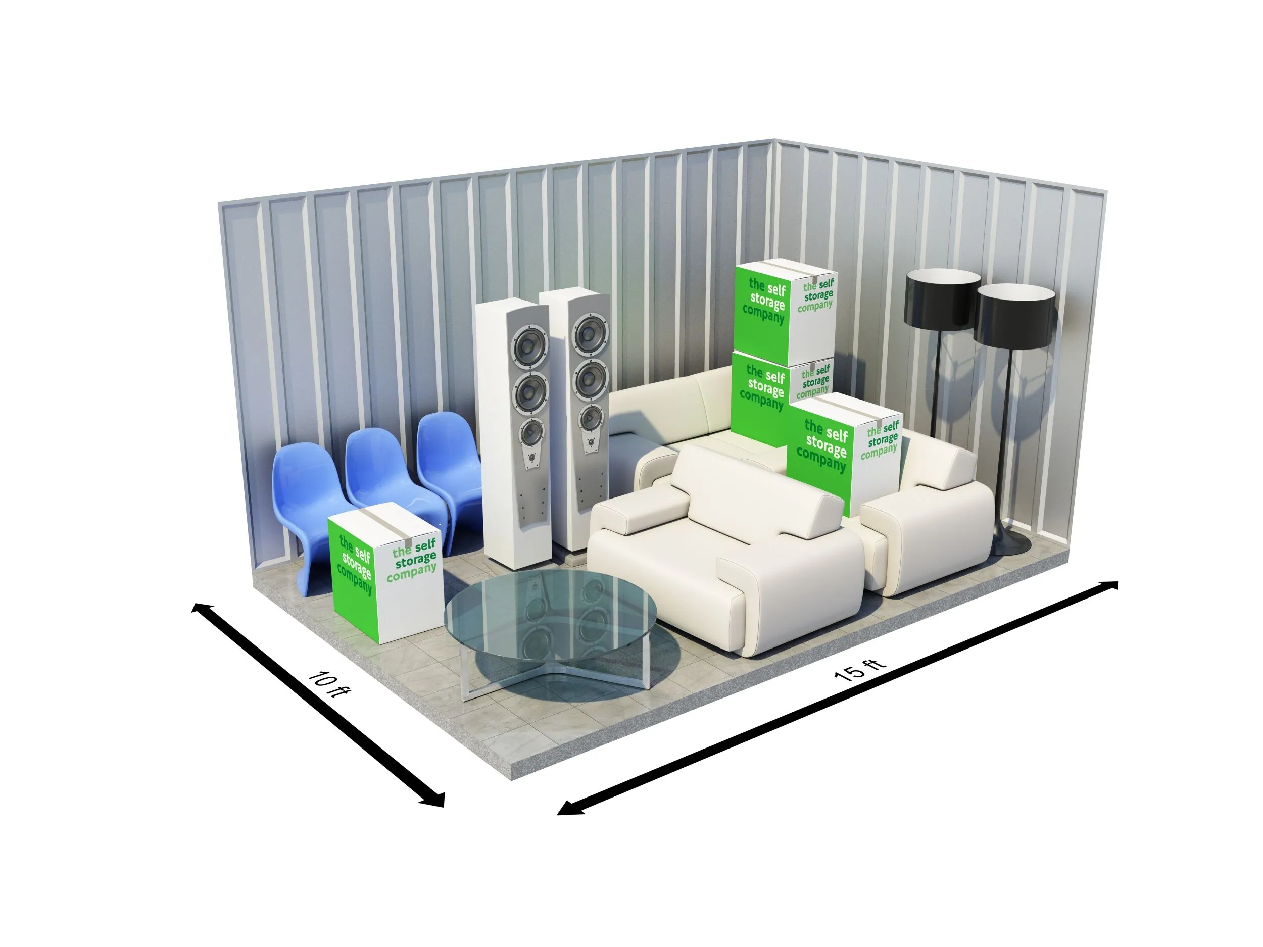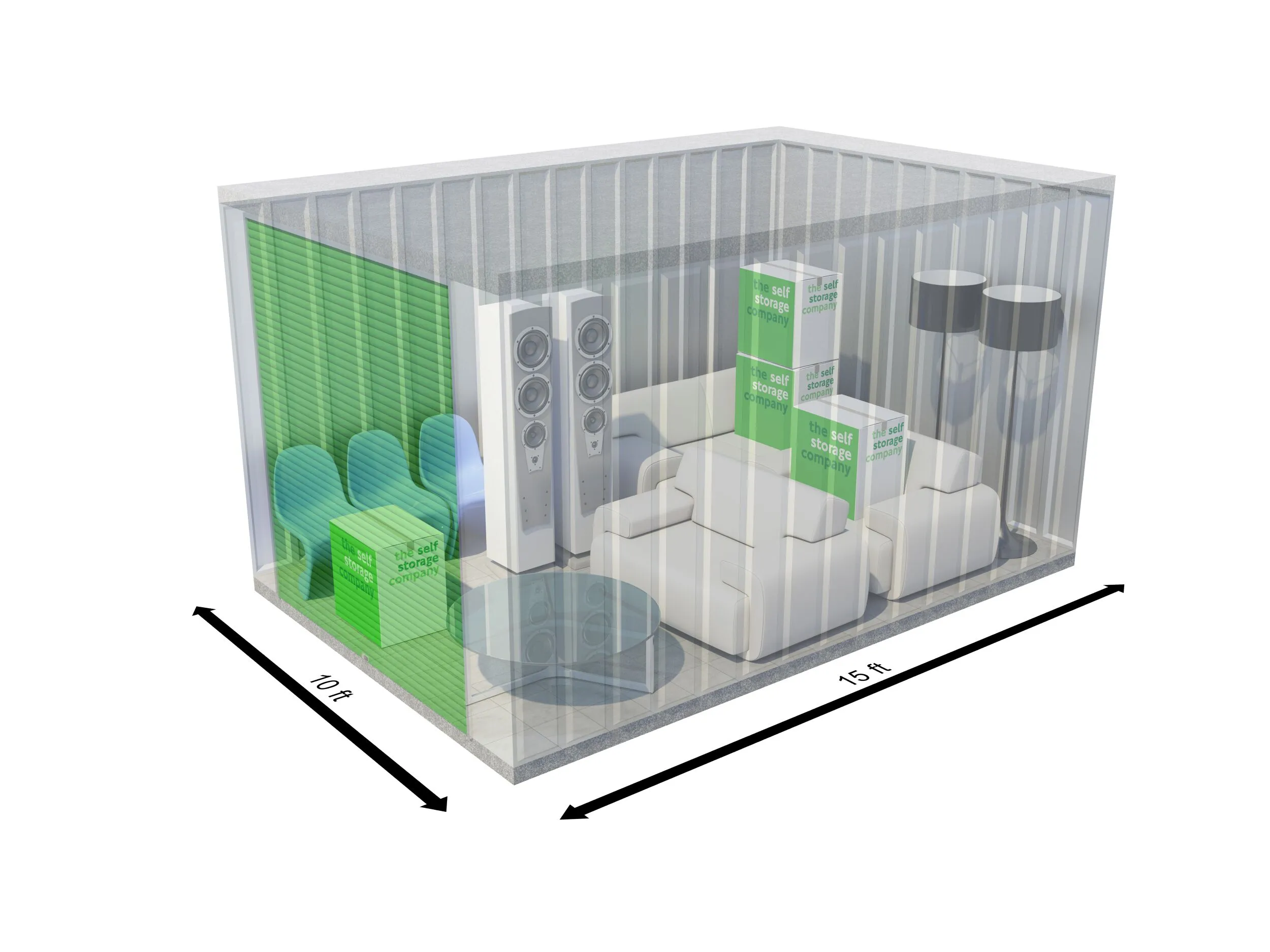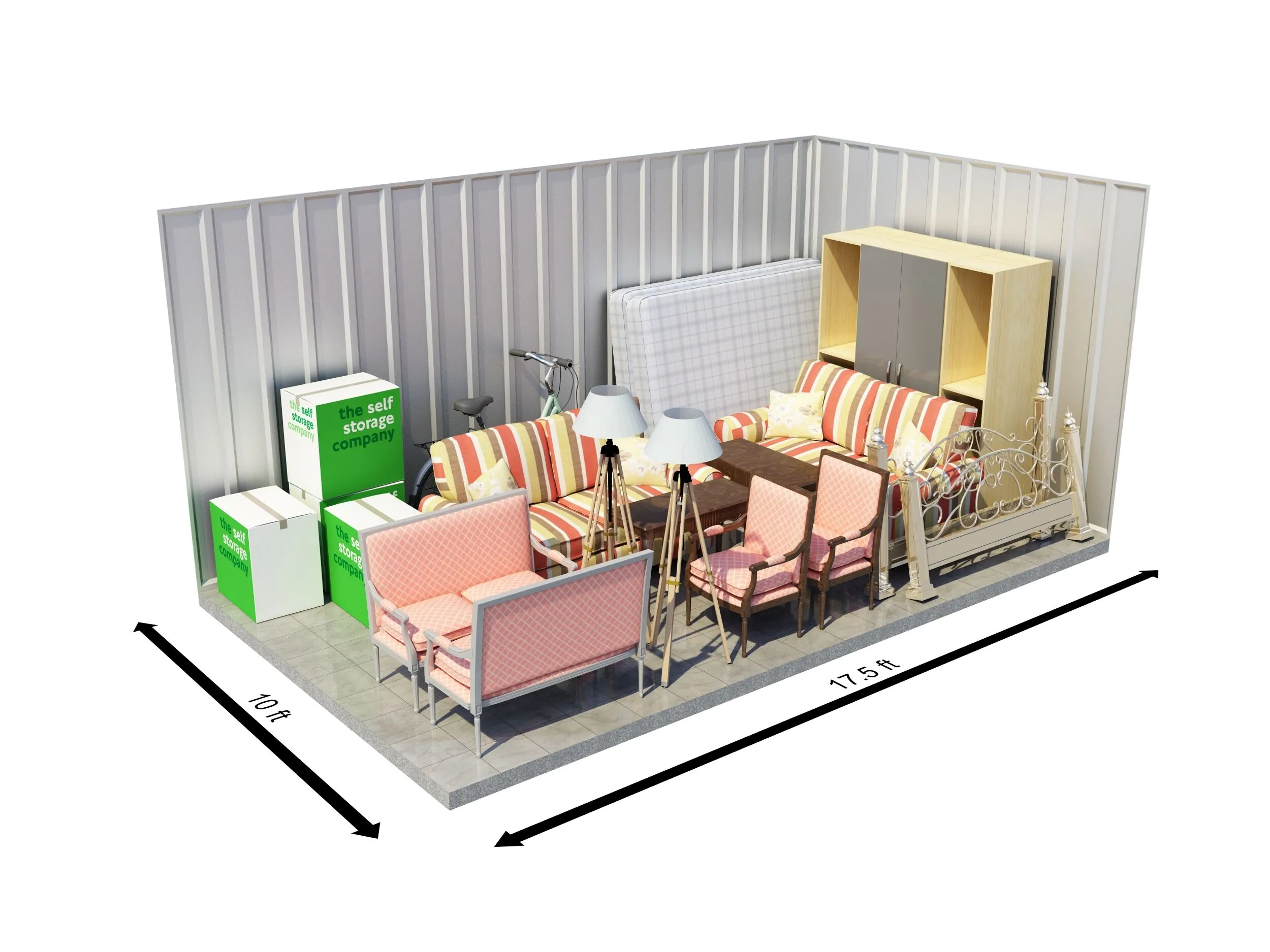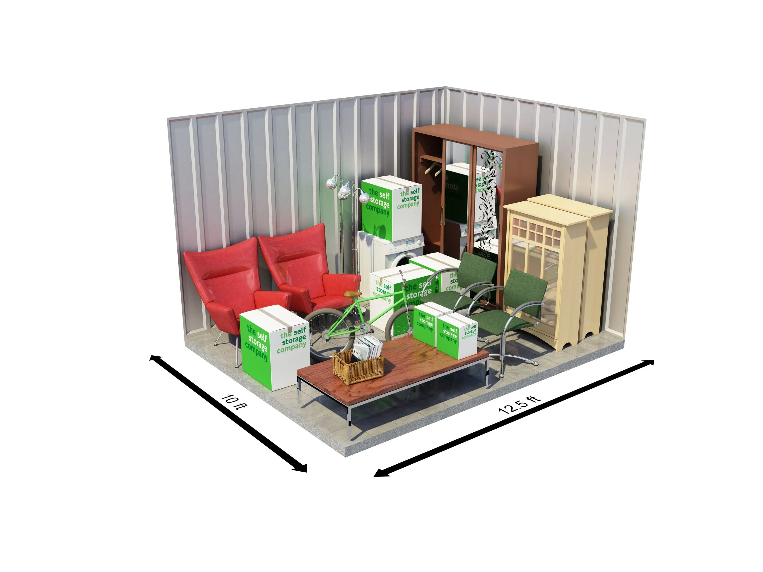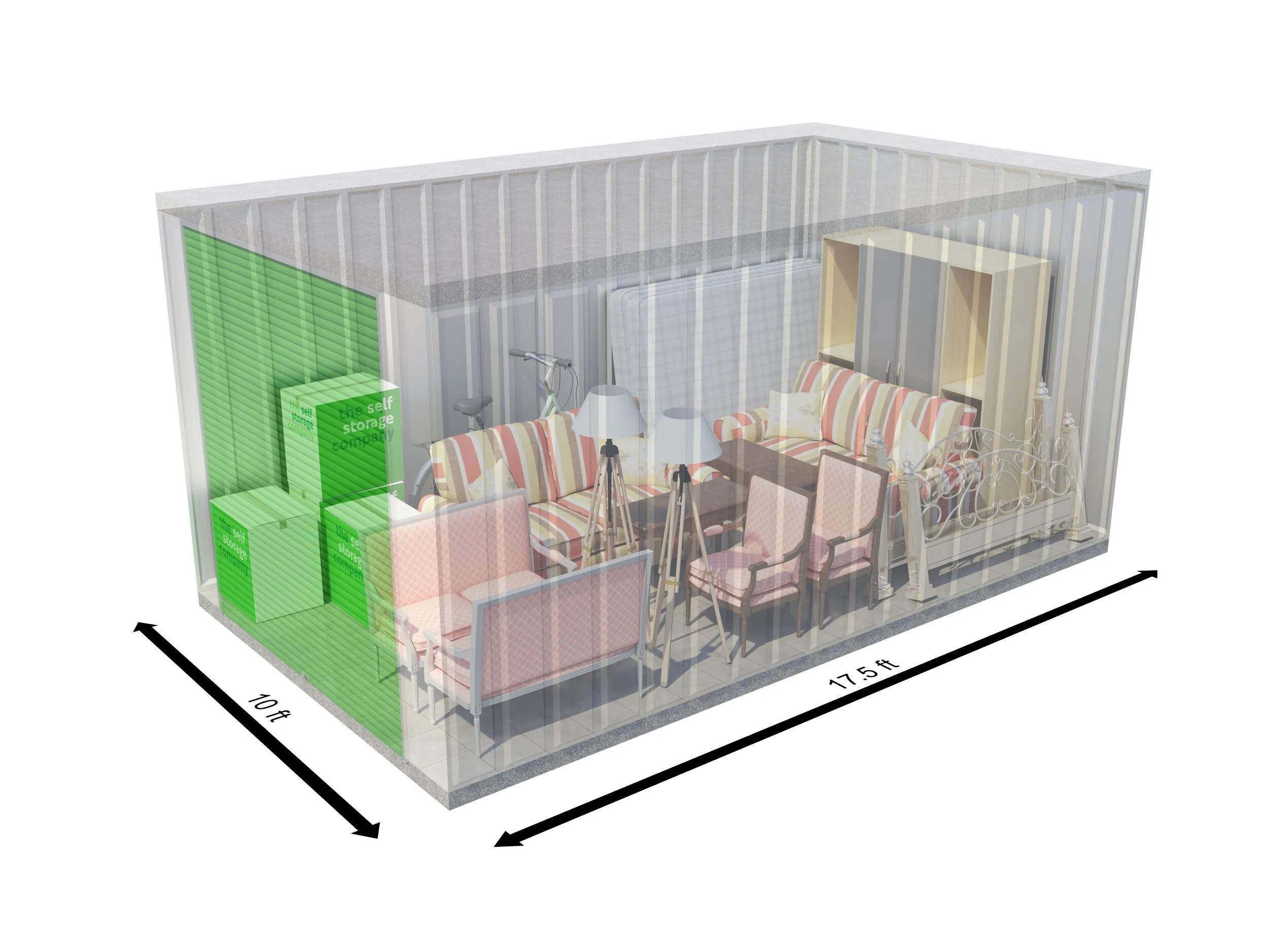 Our 175 sqft self-storage units at The Self Storage Company can fit up to 280 boxes or the equivalent contents of a 4-bedroom house. This storage unit size is ideal for customers who live abroad and require a clean, dry and secure space for their household items and furniture while away.